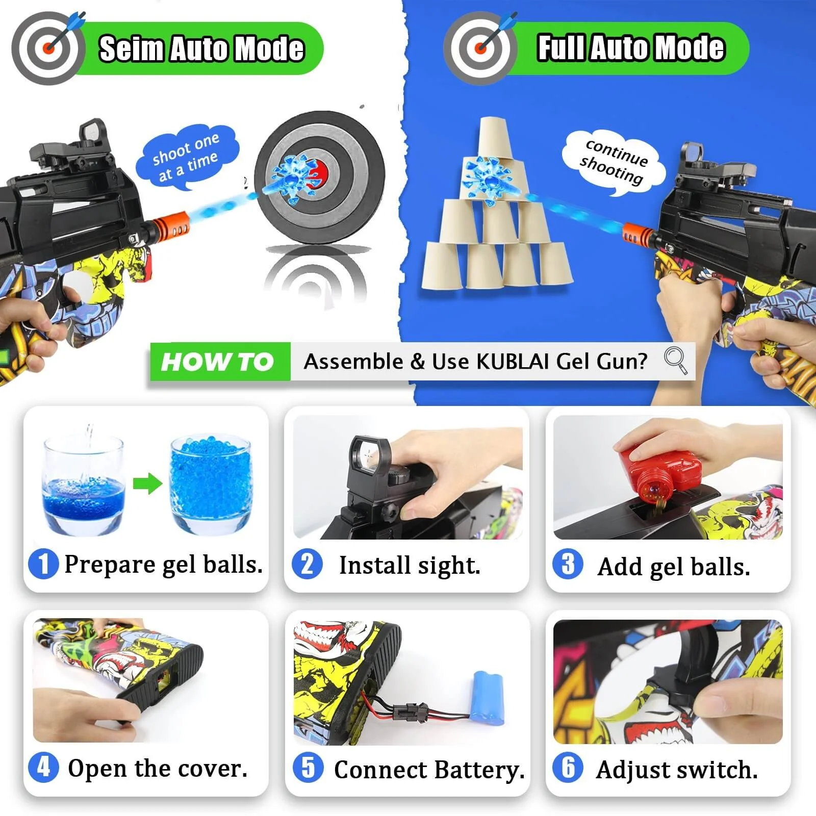 P90 Gel Ball Blaster Electric Splatter Ball Toy - Graffiti Color Orange Tip